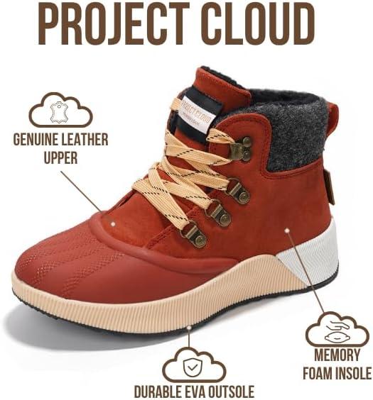 Project Cloud Waterproof Snow Boots for Women – Memory Foam Insole Non-Slip Womens Snow Boots & Winter Shoes with Shoe Lace – Lightweight Indoor Outdoor Shoes(Maroon-hiker Upper)