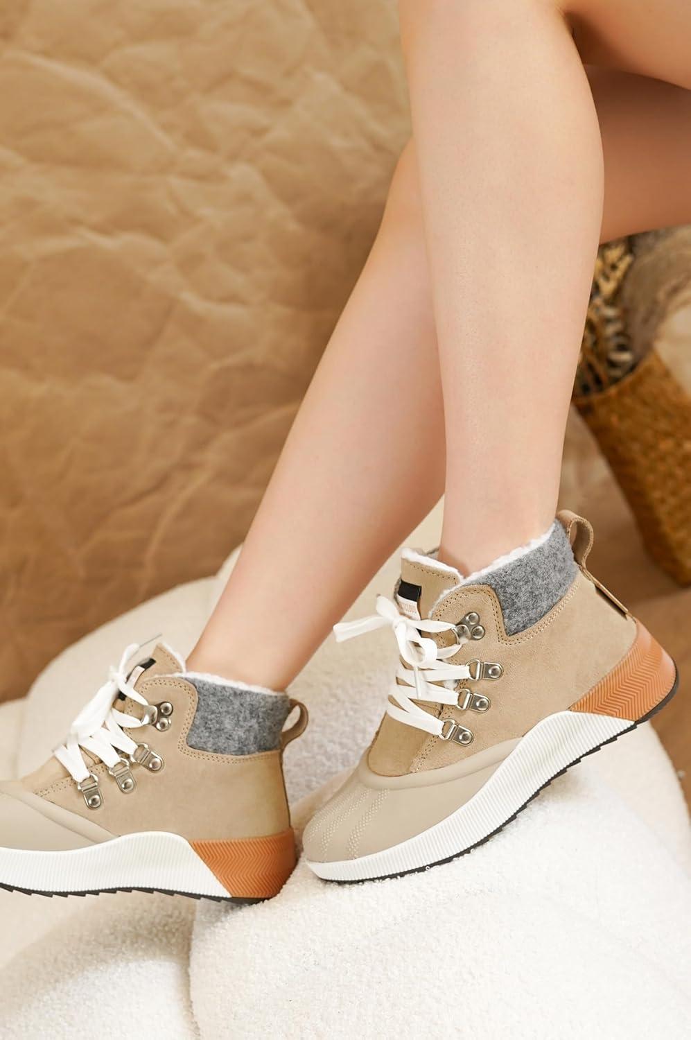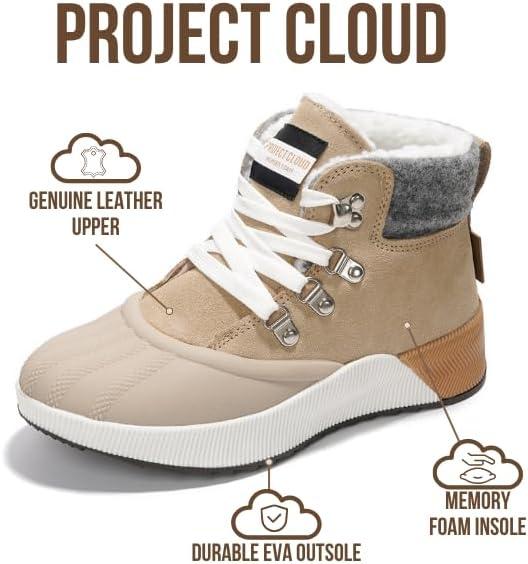 Project Cloud Waterproof Snow Boots for Women – Memory Foam Insole Non-Slip Womens Snow Boots & Winter Shoes with Shoe Lace – Lightweight Indoor Outdoor Shoes(Taupe-hiker Upper)