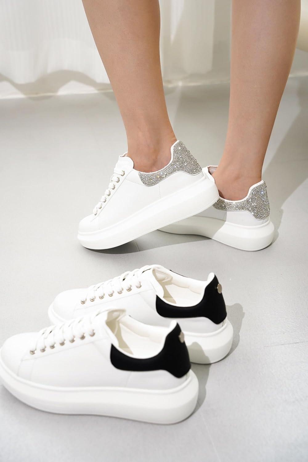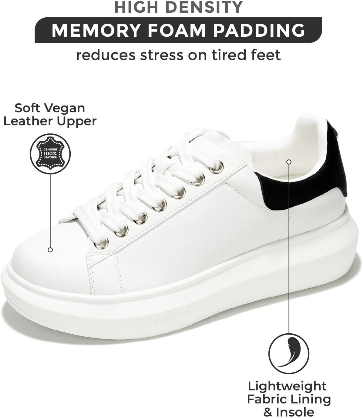 Project Cloud Women’s Fashion Sneakers Leather Tennis Shoes Womens & White Sneakers for Women w/Memory Foam Insole – Lace Up Shoes for Women Non-Slip Womens Sneakers Street Wear (Queen)