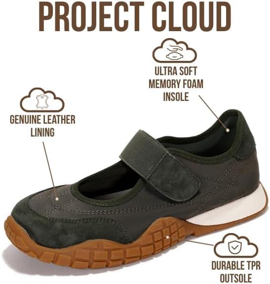 Project Cloud Womens Shoes – Lightweight Mary Jane Shoes Women with Memory Foam Insole – Non Slip Flats for Women Footwear – Women’s Fashion Sneakers 2025 (Donna)(Olive)