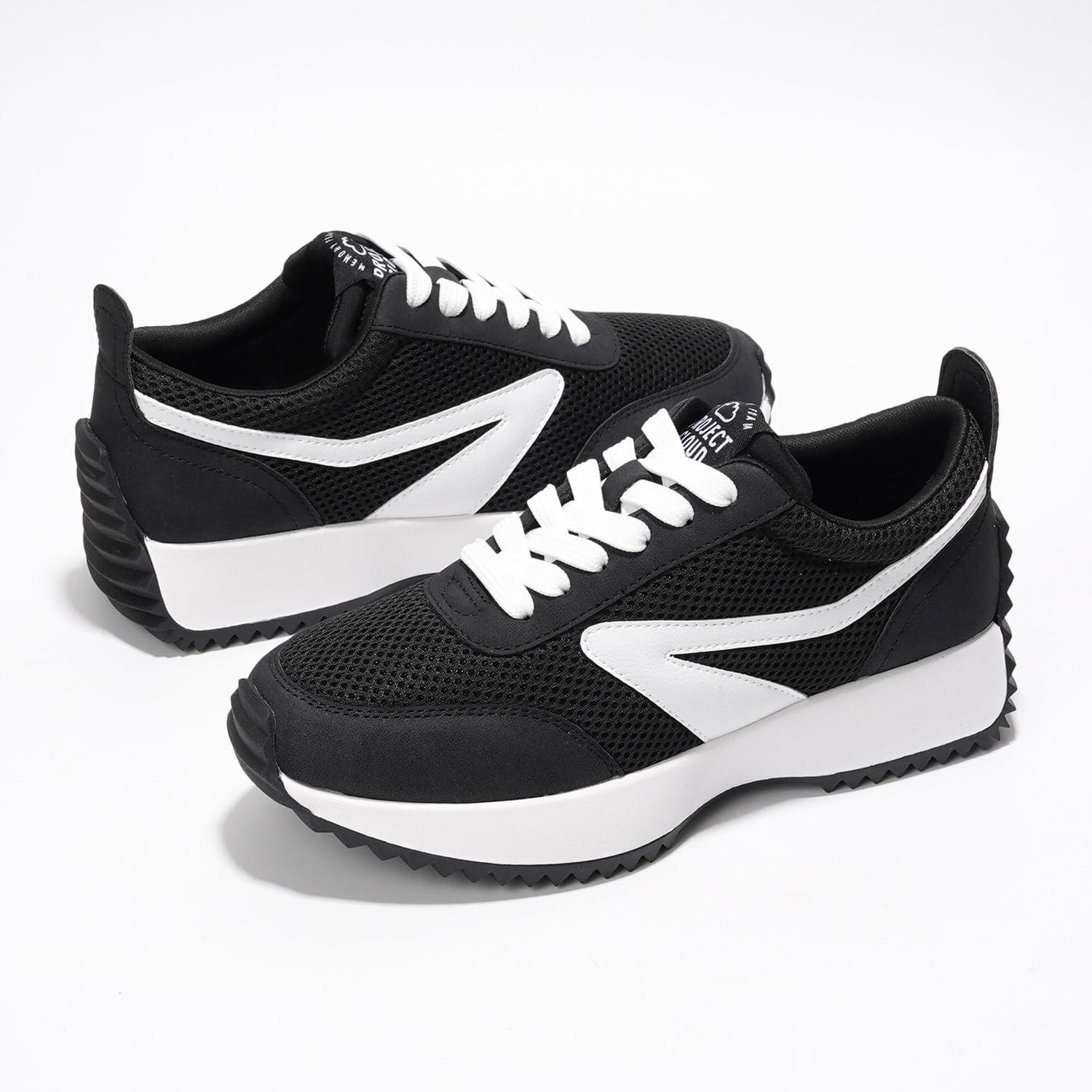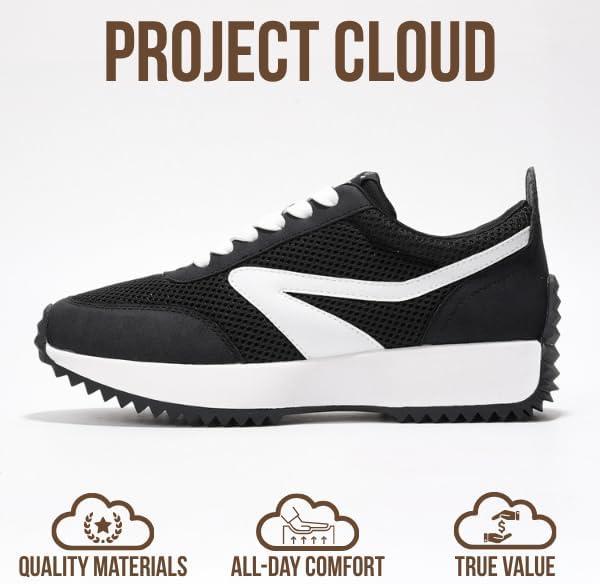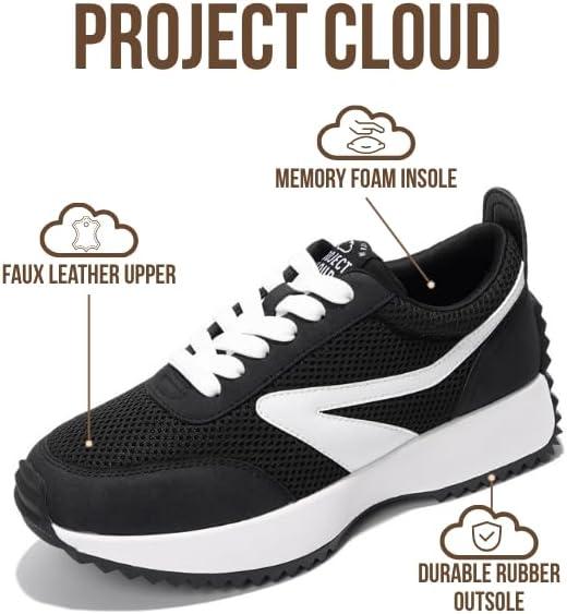 Project Cloud Womens Sneakers – Memory Foam Insole and Lightweight Spring Shoes – Non-Slip Lace Up Trendy Shoes – Fashion Sneakers for Women 2025(Black-balinda)
