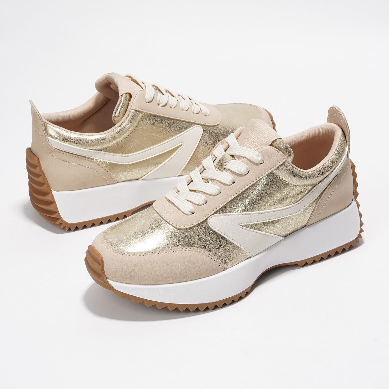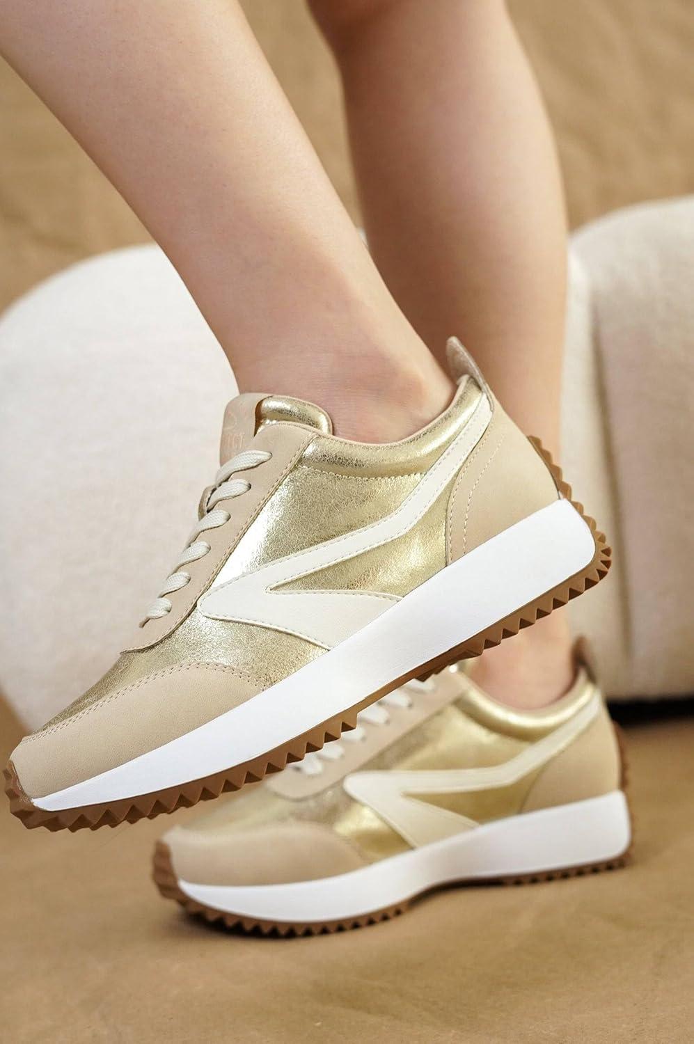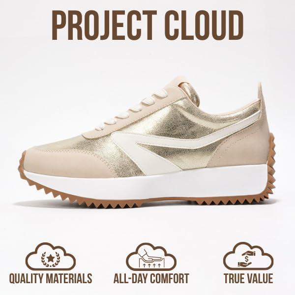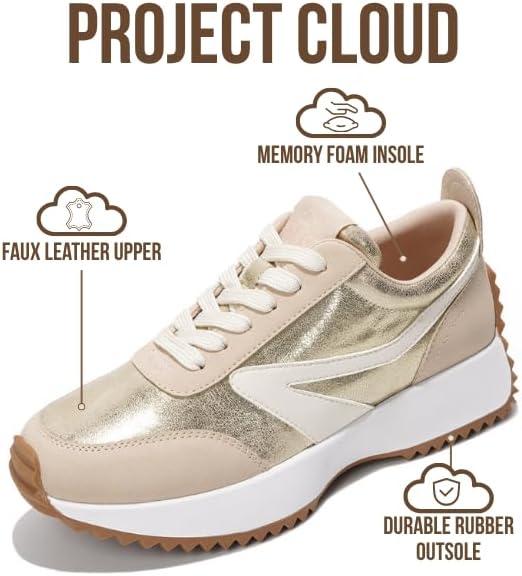Project Cloud Womens Sneakers – Memory Foam Insole and Lightweight Spring Shoes – Non-Slip Lace Up Trendy Shoes – Fashion Sneakers for Women 2025(Gold-balinda)
