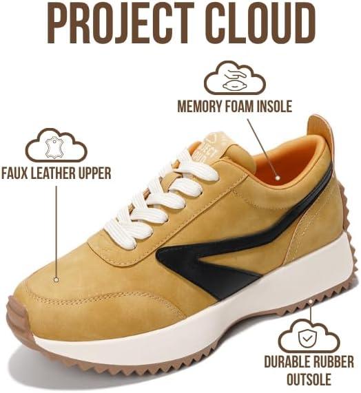 Project Cloud Womens Sneakers – Memory Foam Insole and Lightweight Spring Shoes – Non-Slip Lace Up Trendy Shoes – Fashion Sneakers for Women 2025(Mustard-balinda)