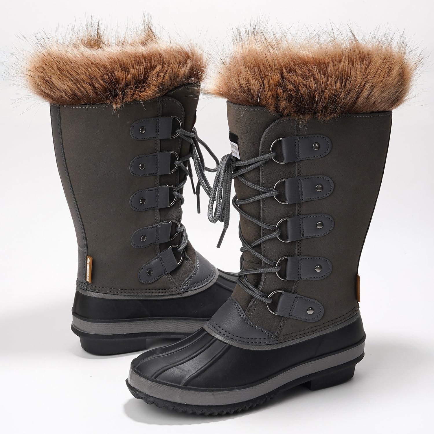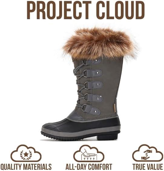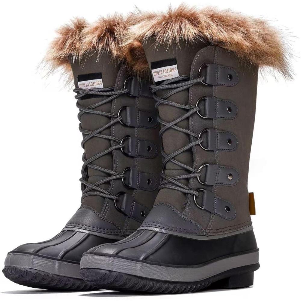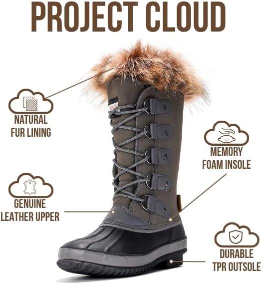 Project Cloud Womens Snow Boots – 100% Genuine Leather Memory Foam Insole Fur Mid-Calf Winter Snow Boots for Women Footwear – Lightweight Non-Slip Outdoor Shoes (Ventura)(Grey)